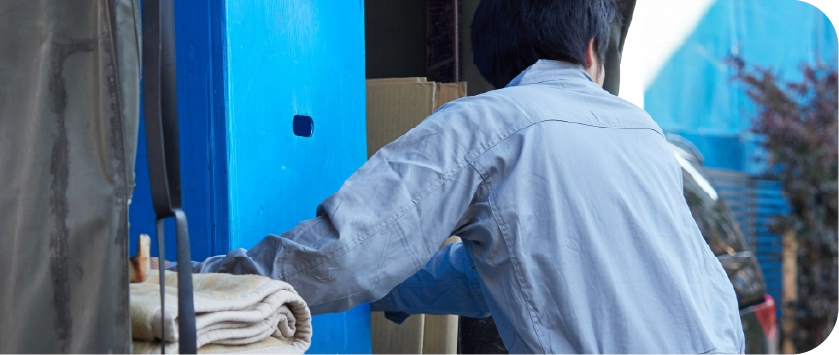 養生を施したうえで、室内や建物を傷つけないよう慎重に遺品を搬出します。大きな家具なども安心してお任せください。